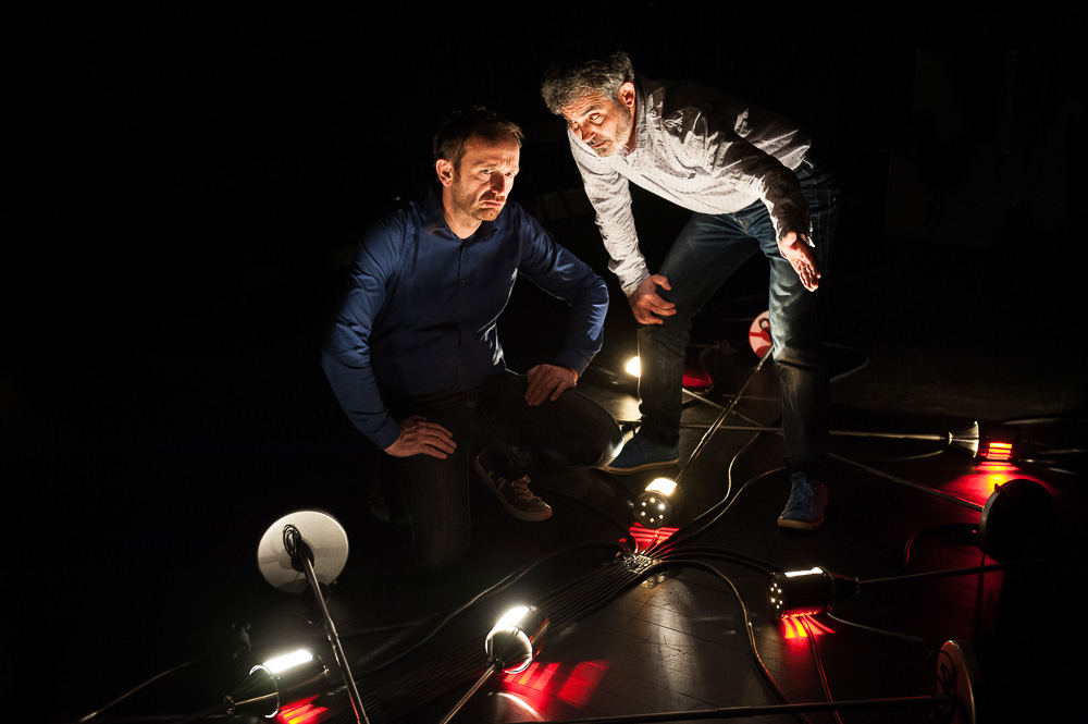 Ici un exemple de photographie de théâtre, on voit bien sur la première image les visages et la chemise claire sont “brûlés”, on ne perçoit plus les détails à cause de la forte luminosité qu’ils reçoivent. L’image finale en dessous est un assemblage de plusieurs développement du fichier raw pour équilibrer les écarts de lumière. L’arrière plan a été assombri pour ne pas gêner la lecture de l’image, et on retrouve du détail dans les zones qui étaient trop claires.
