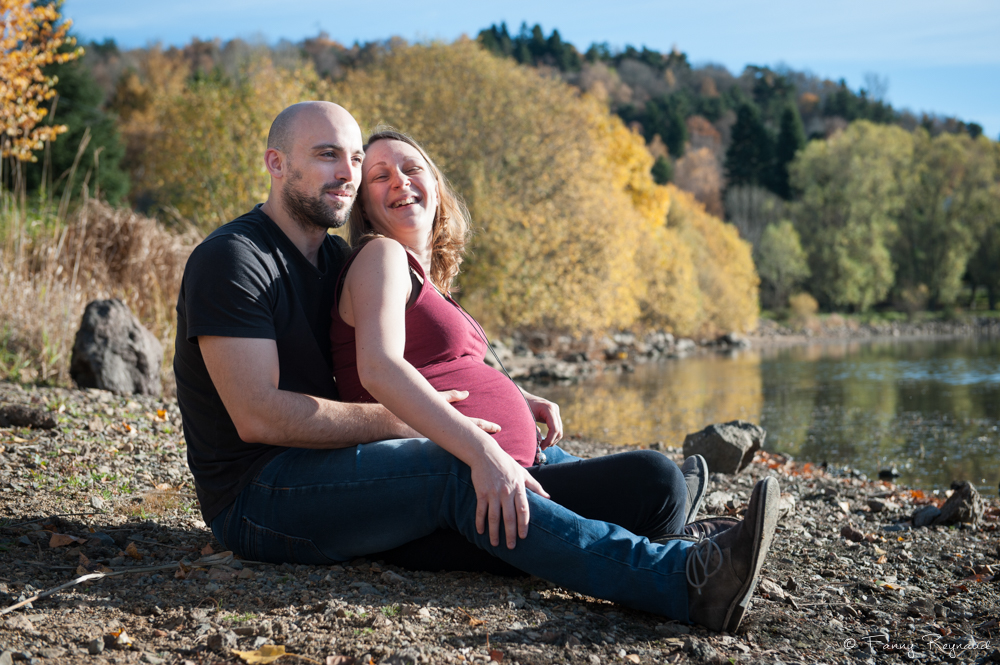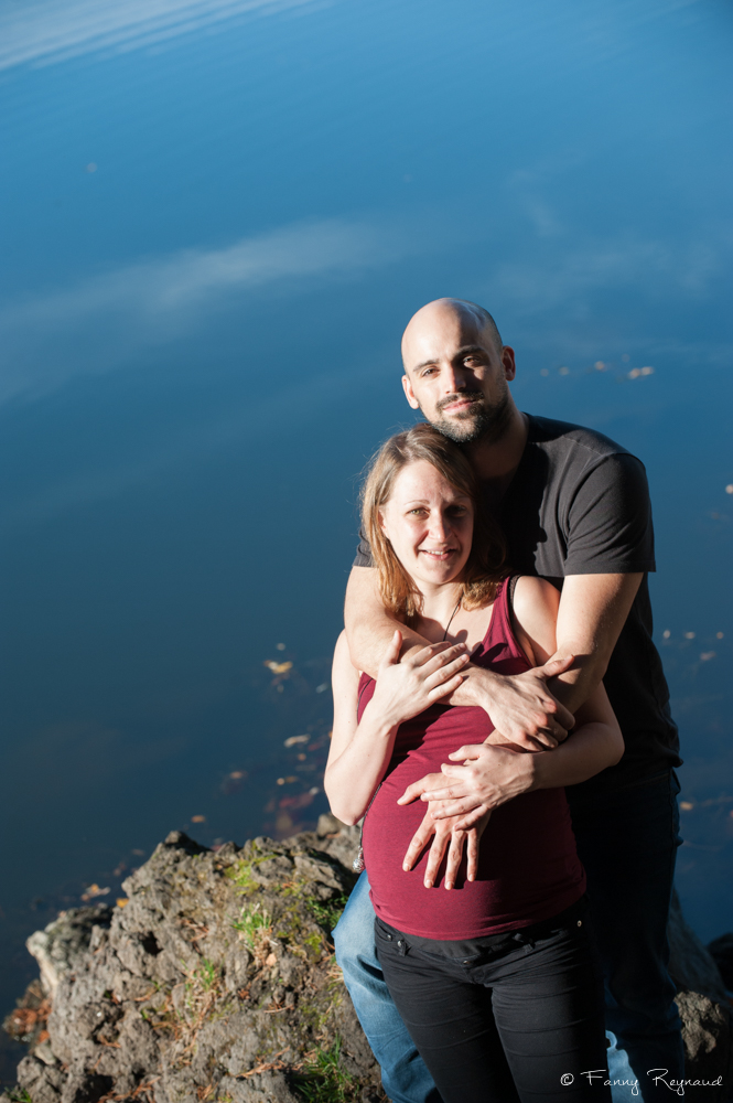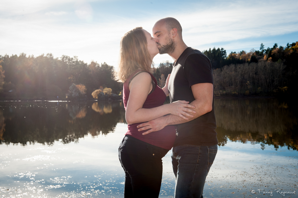 Virginie et David attendant un heureux événement. Ils ont préféré l’apaisement du lac de la Cassière – moins fréquenté que le lac d’Aydat qui est à proximité – pour leur séance grossesse. Le temps était parfait ce premier samedi de novembre : lumière chaude et douce de fin d’après-midi et bleu cobalte du lac.