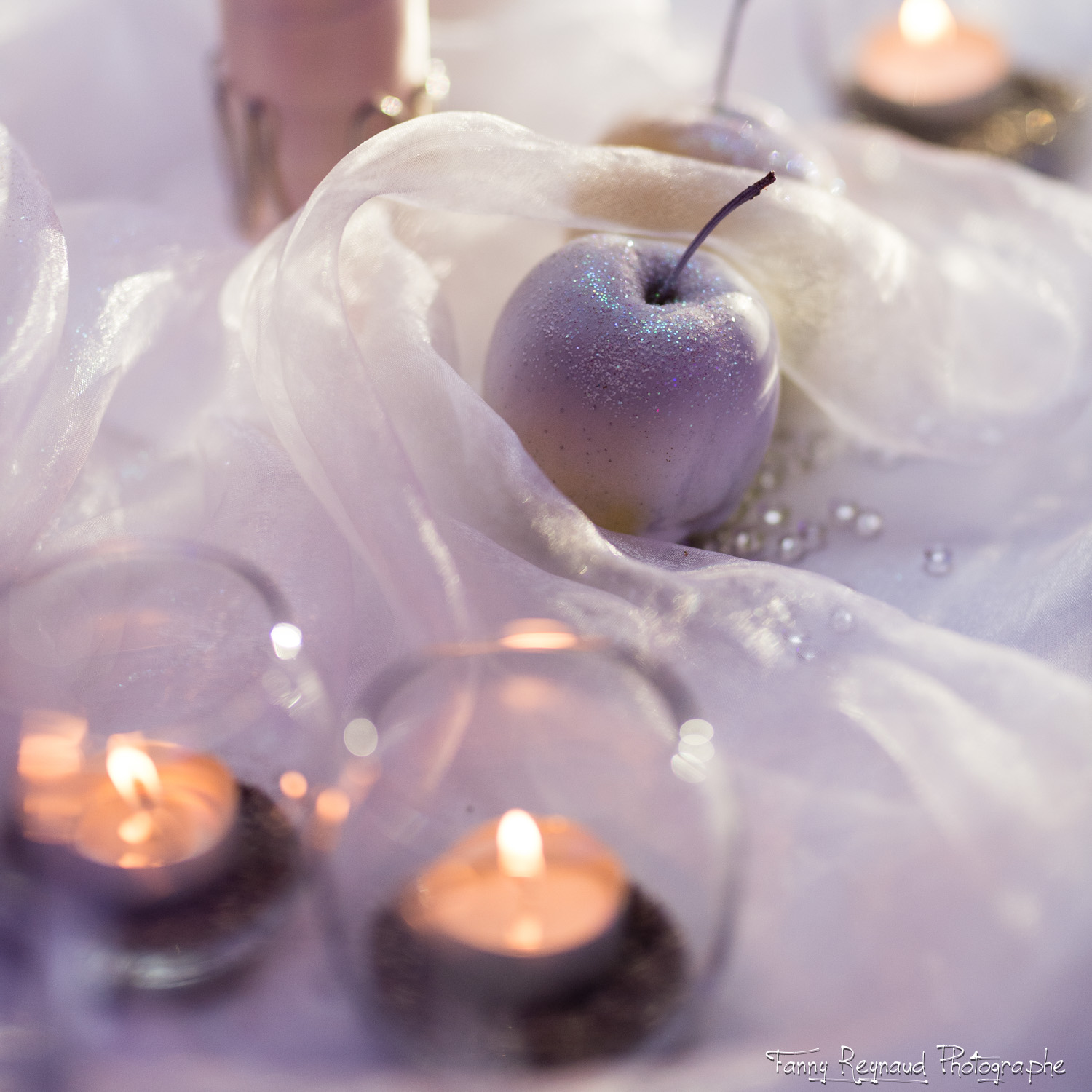 Charles Design c’est l’art du détail : des pétales de fleurs au sol, les pommes pailletées à la main, des cristaux sur les tables.