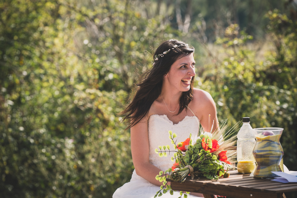 Le jour J, rendez-vous dans l’appartement en chantier, on utilise la seule pièce rénovée, les copines et la famille sont là et mettent la main à la patte : l’une fait le maquillage, l’autre la coiffure. Il nous manque plein de choses, tant pour la coiffure que le maquillage : c’est l’improvisation, mais quel moment drôle et émouvant. On cherche un miroir : il n’est pas encore déballé !