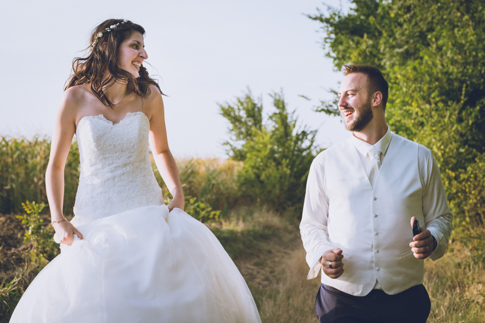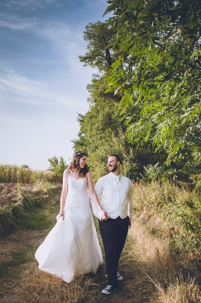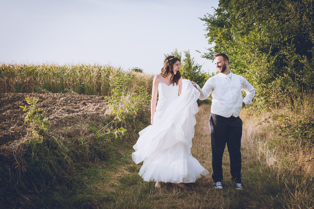 Les photos de couple se font simplement, à leur image, ils sont détendus, heureux et me font pleinement confiance. Nous partons dans les champs. Ils répètent la chorégraphie qui ouvrira le bal, et les fous rires viennent !